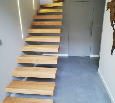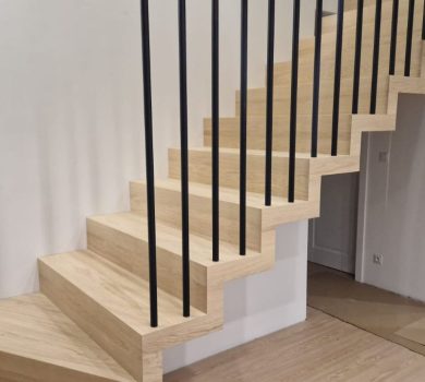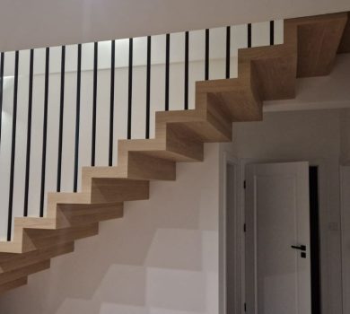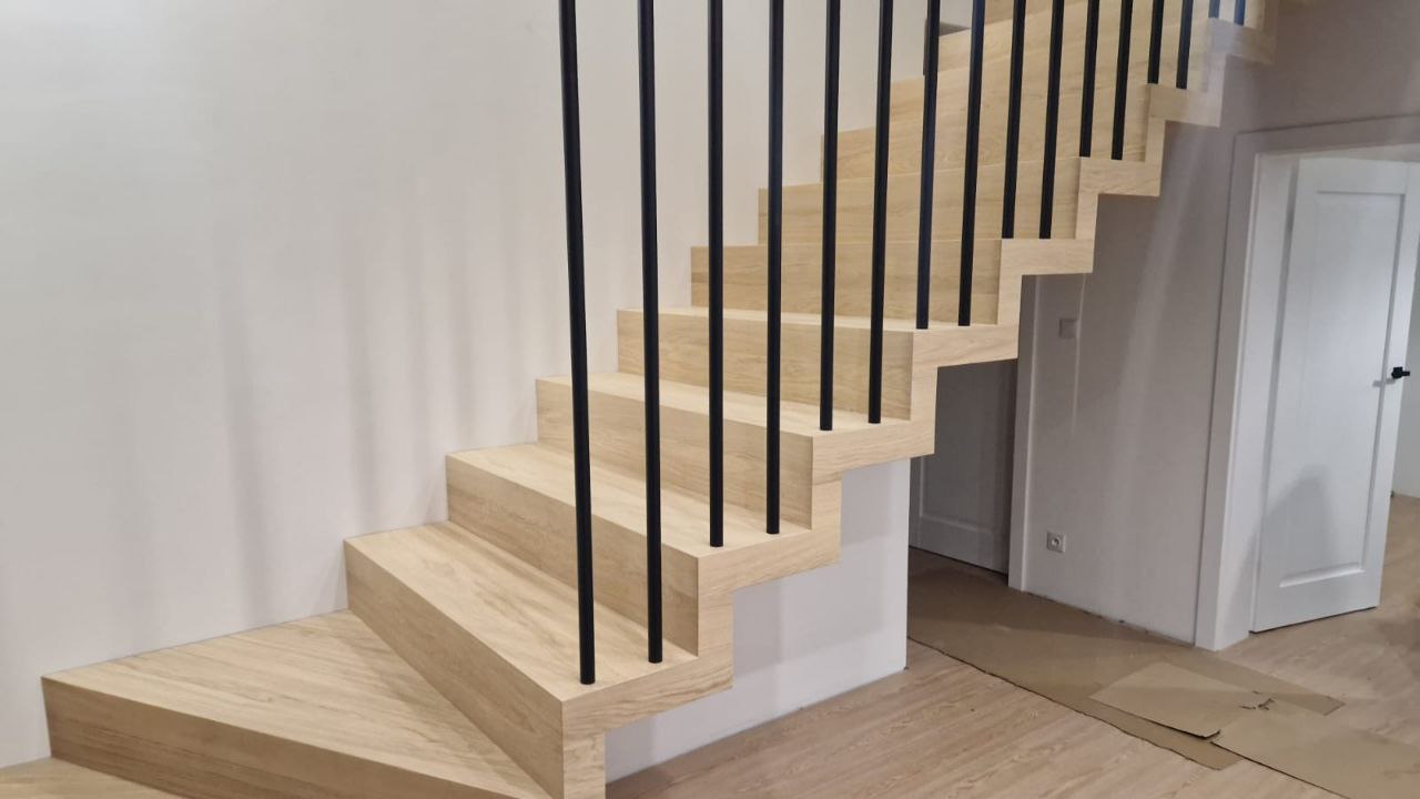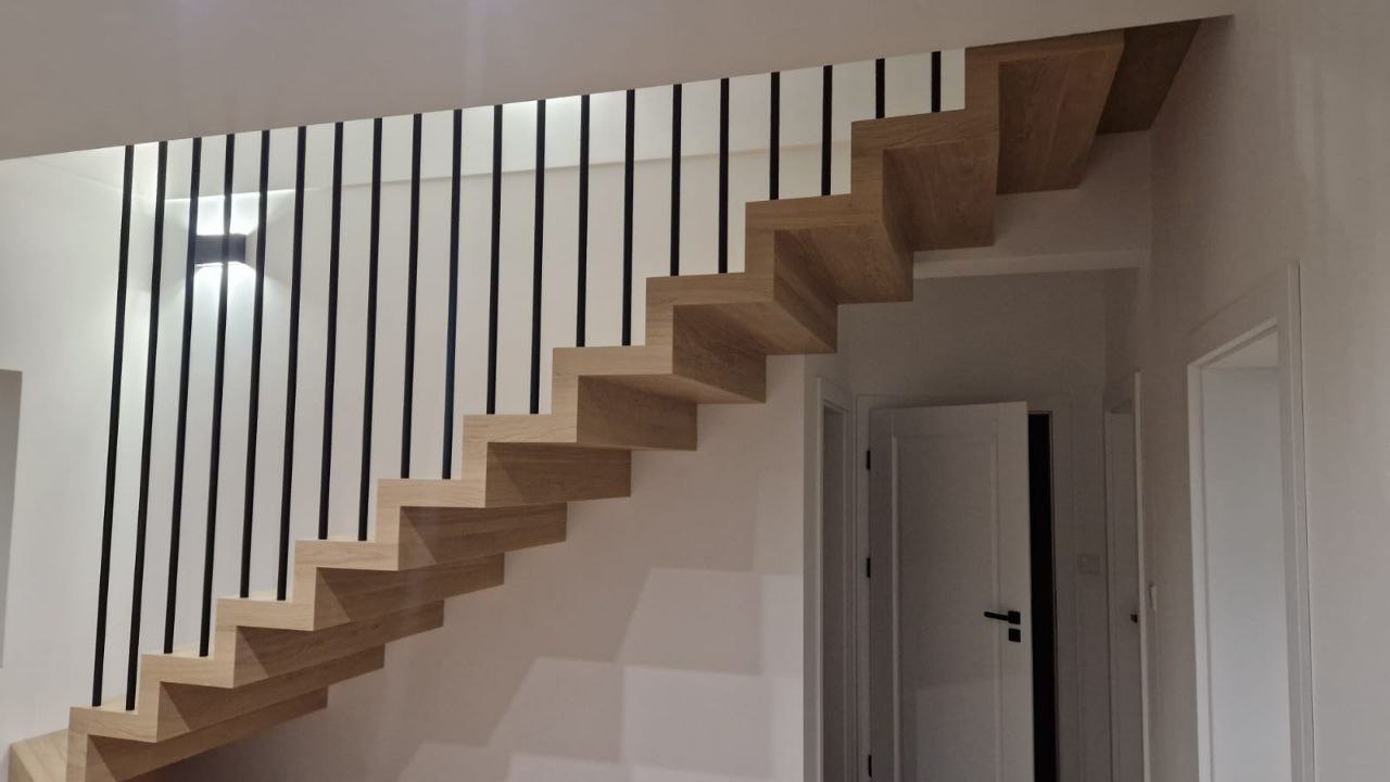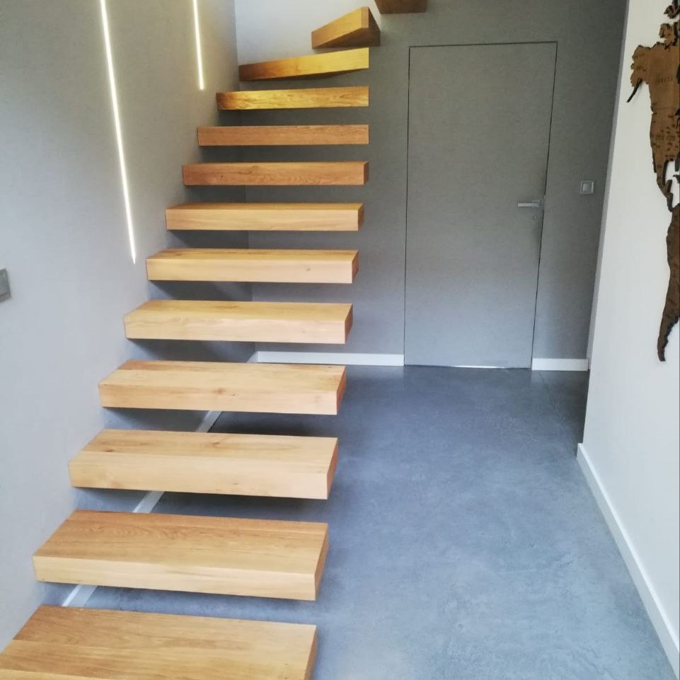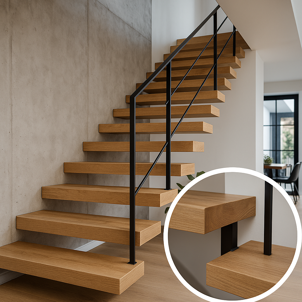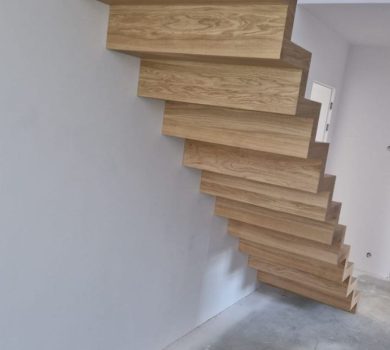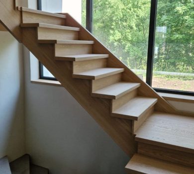 Schody to nie tylko funkcjonalny element domu, ale także prawdziwa ozdoba wnętrza. Nasze półkowe schody z dębowymi nakładkami to połączenie minimalistycznego designu z naturalnym pięknem drewna.